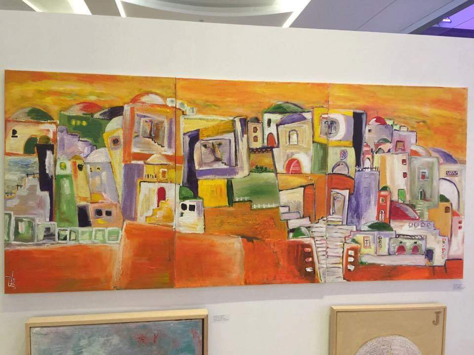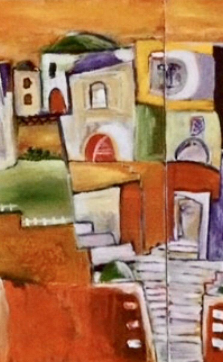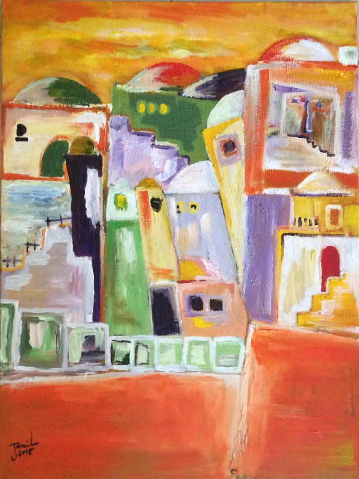 In the early morning at nine o'clock, when the sun’s strands overlap with the lines of the beautiful houses, positive energy is emitted in us. (note: this painting work consists of three parts).
