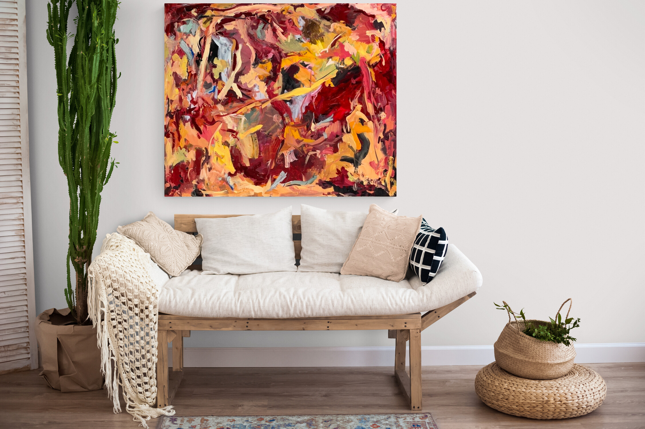 This painting is part of the series "The Thousand and One Nights" that is inspired by cities I visited and I hope to visit again to stay there for longer times. I named the painting after the costal city Sousse of Tunisia, which I have been to its lovely beaches for one day in 2018 and hope to visit again to spend more time enjoying these sandy beaches. I made the painting in February 2021. The medium is oil on canvas of size 39x47 inches (100x120 cm). I have signed it on the front. The stretched canvas is staple free sides, wired on the back and with no need for framing. It's ready to hang.