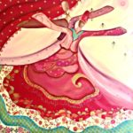 Oil and Gold Leaves on Canvas. Sufi painting, Dancing Dervish.