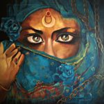 Acrylic, Gold Leaves & Mixed Media on canvas with Antique Frame.