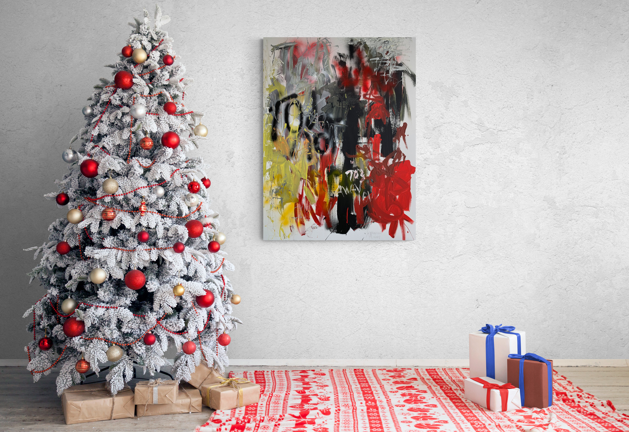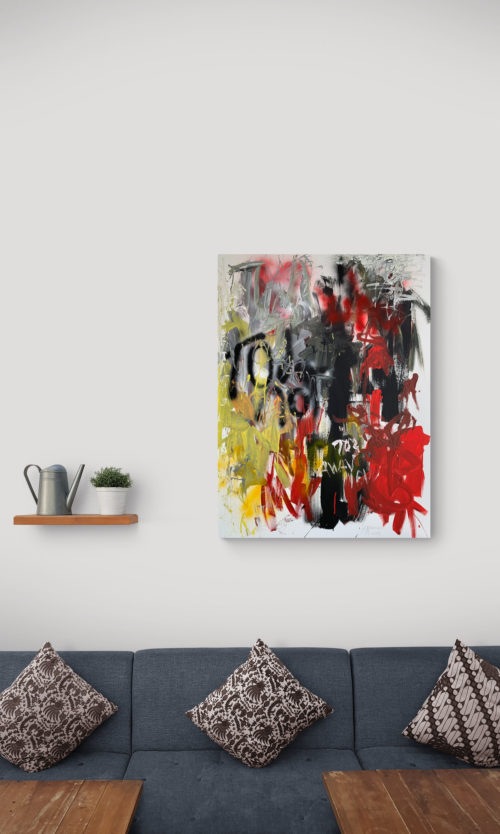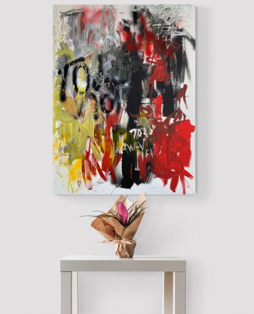 This is part of a series of gestural abstraction paintings. The lines and marks evoke great energy and strength. While the colours bring about the feelings felt at those times. It is made of acrylic on canvas. Created in April 2019. The painting is signed on the front by me. The stretched canvas is staple free sides, wired on the back and with no need for framing. It's ready to hang.
