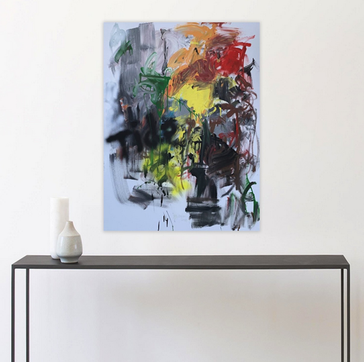 This is part of a series of gestural abstraction paintings. The lines and marks evoke great energy and strength. While the colours bring about the feelings felt at those times. It is made of acrylic on canvas. Created in April 2019. The painting is signed on the front by me. The stretched canvas is staple free sides, wired on the back and with no need for framing. It's ready to hang.