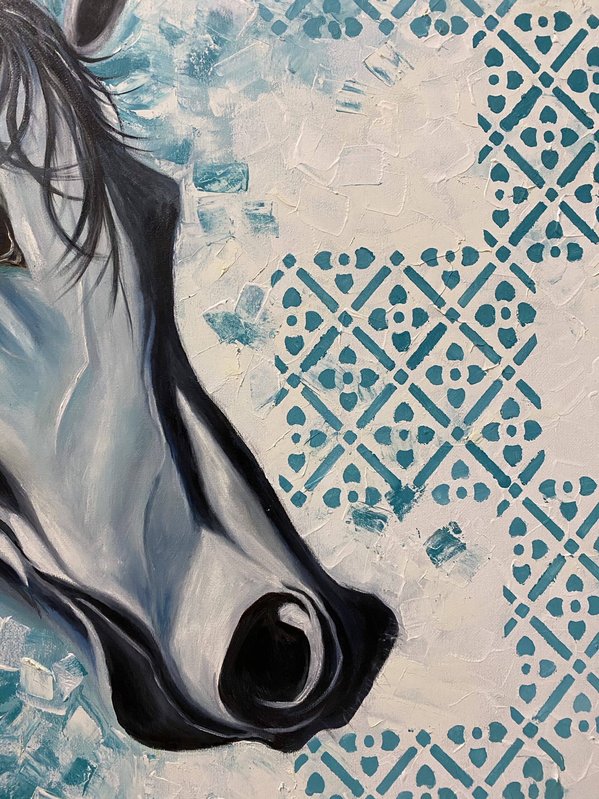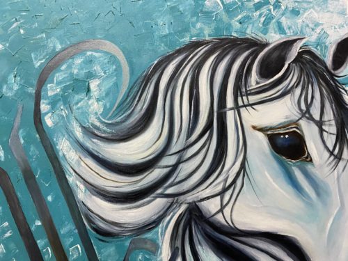 The year 2020, saw a phenomenon that has never occurred before; the very first Arab interplanetary probe conducted by the UAE. It was the first small ray of “Hope” in this catastrophic year, and so has been aptly named: “The Hope Probe” This probe inspired me to try and focus on the light within an ocean of darkness and made me hopeful for the coming events in store for me and everyone else. With a hopeful heart and my passion for painting I have tried to create a symbolism between Hope and my favourite muse: the horse. The horse and hopefulness (Al Amal in Arabic) go hand in hand, as a horse depicts strength in face of adversity, while hope acts as the driving force behind this strength.