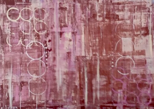 70 x 50cm Acrylic on canvas ‘All around pink’ unframed stretched canvas By artist Sharon Adams