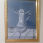Still life painting depicting a beautiful silver arabic teapot detailing is done as how light falls on it and then how it looks like