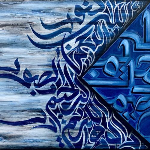 Asma Ul Hasna - Holy names of Allah swt, an original artwork with lots of texture and has 4 Holy names ALLAH, Ar Rahman, Ar Raheem, Alkareem, in a contemporary Calligraphy style