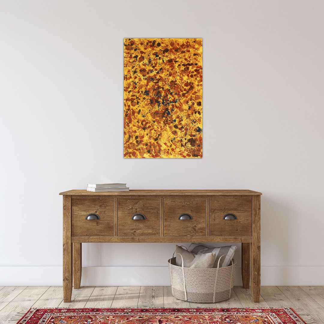 Original abstract acrylic painting made with the palette knife on a stretched canvas representing the season Autumn and rain drops. This piece is painted on the sides as well and it does not require a frame. It is fitted with a wall hook and is ready for hanging on your wall. Original artwork signed and dated on the back by the artist.