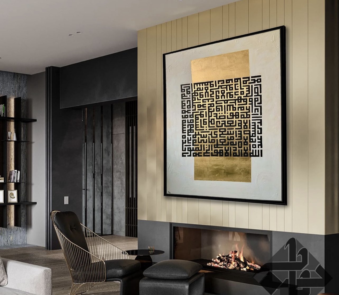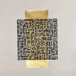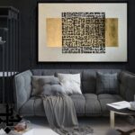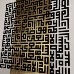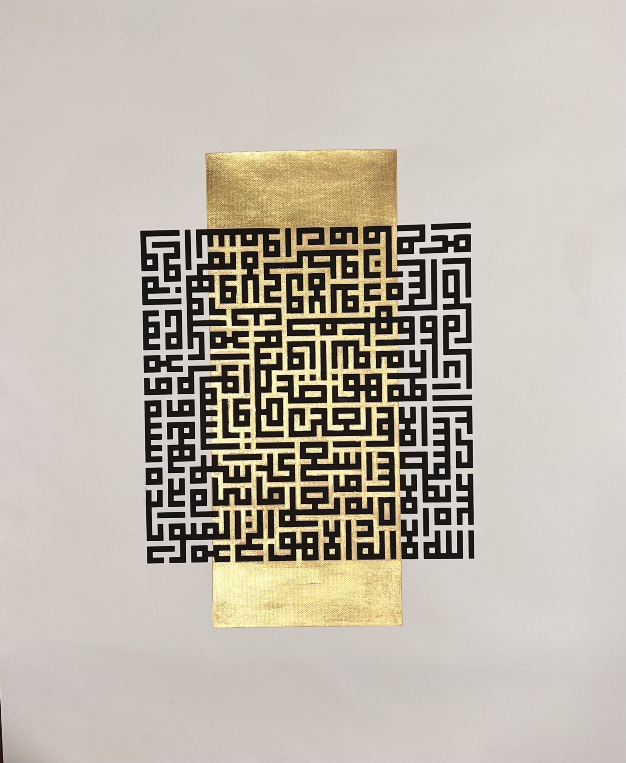 Ayat ul Kursi is a modern composition of Kufic script ayatul kursi on a gold pigmented block , a very contemporary and minimalistic look