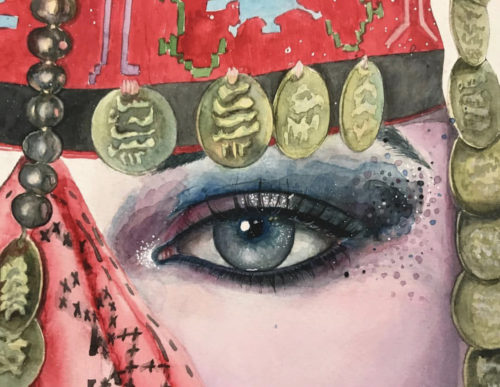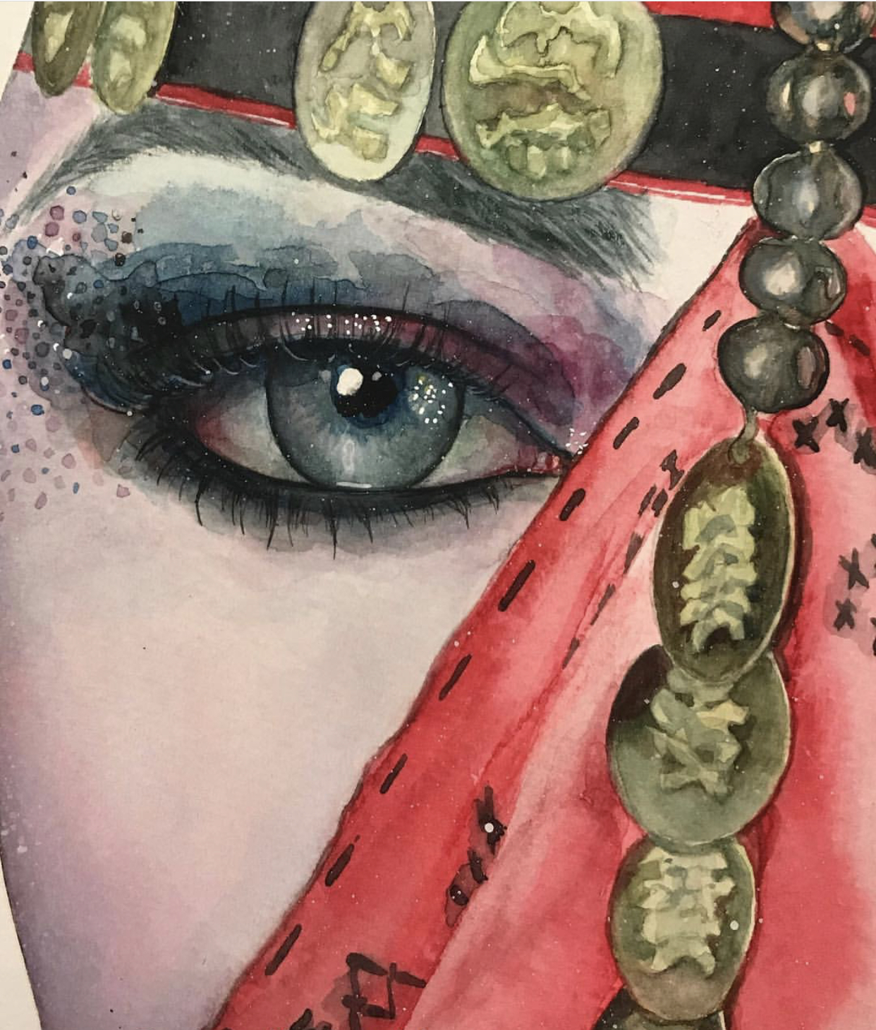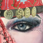 How beautiful those eyes even they are looking behind that magical bedwen mask... It looks like a mobile museum with it‘s colorful and brightful designs and gold coins.. which reflects Sinai history Through the ages. Once women wear that mask their skin breath Freedom.. That beautiful art piece became a contemporary mysterious accessory now for women all over the world. How ever Old women in some countries stills wearing it as a habit.