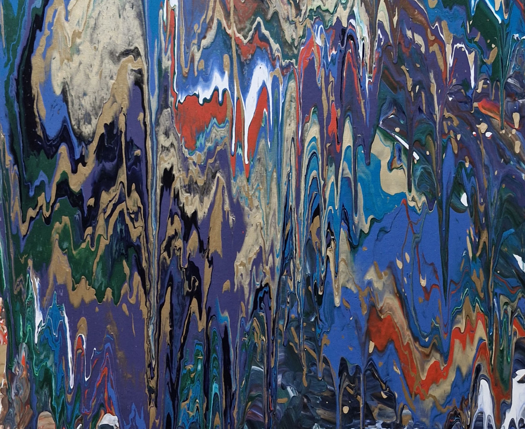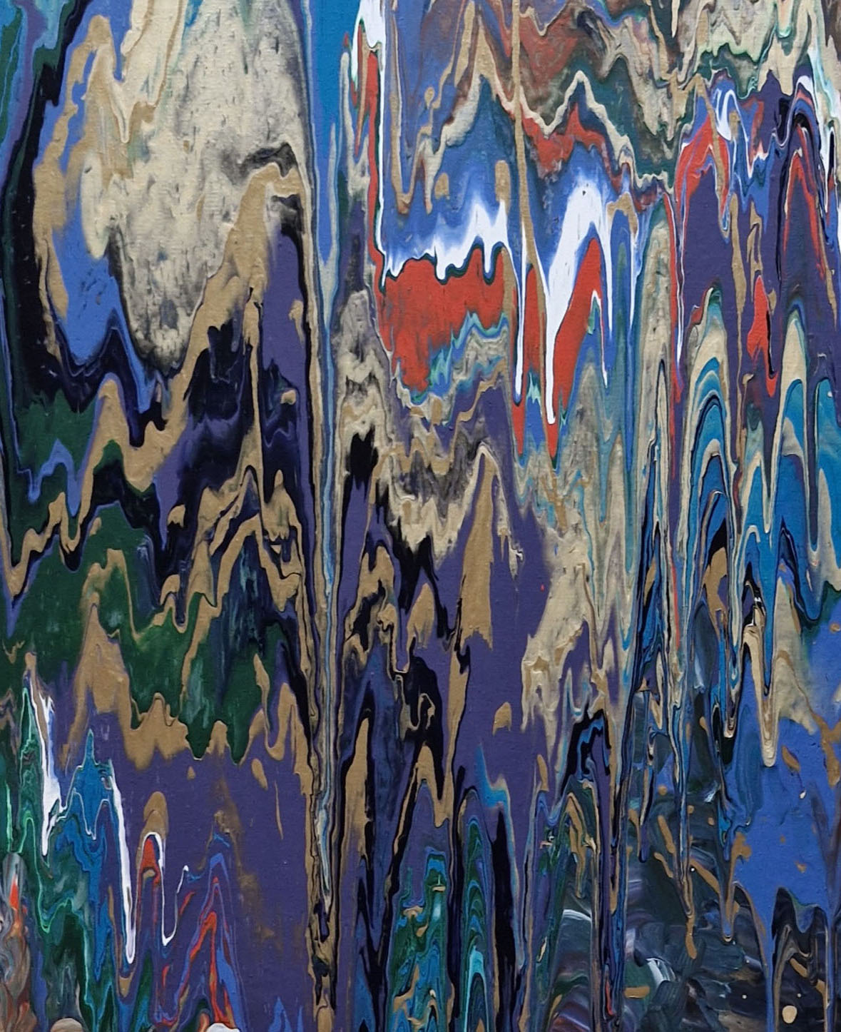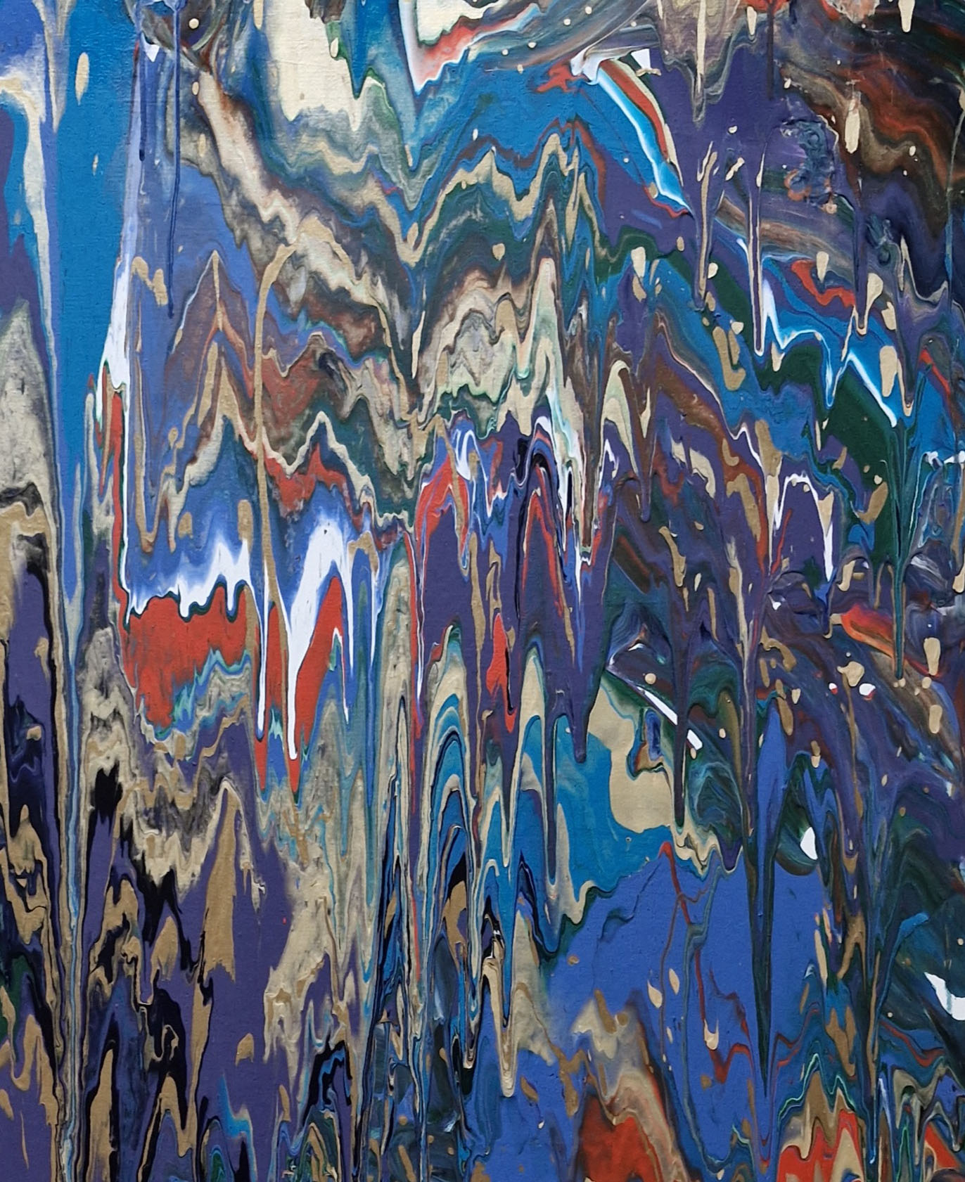 Beautifully bright painting. looks nice both horizontally and vertically. acrylic fluid paint on canvas. gold, turquoise blue and green, violet, white and striking orange dance together creating a beautiful image.