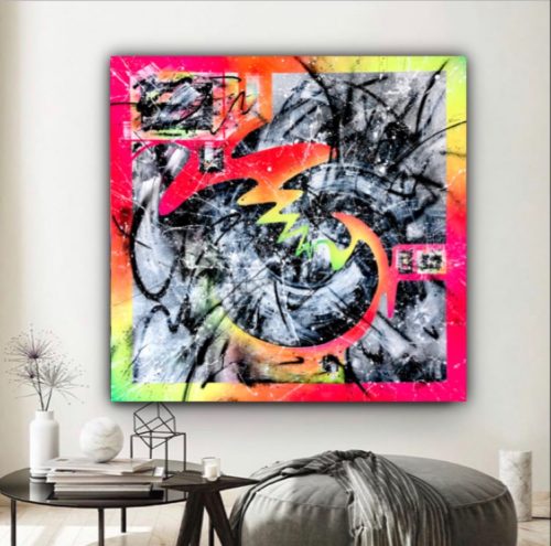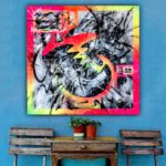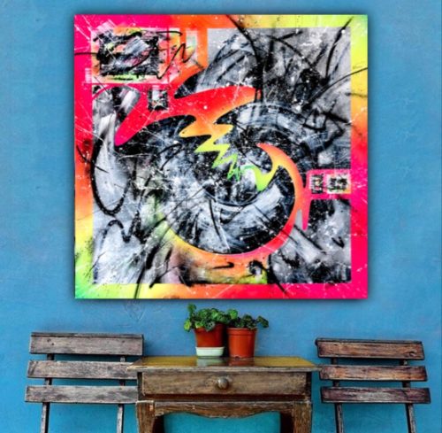 Abstract painting features vivid colors, motion and contrast, bringing magical musical vibe to the next level.