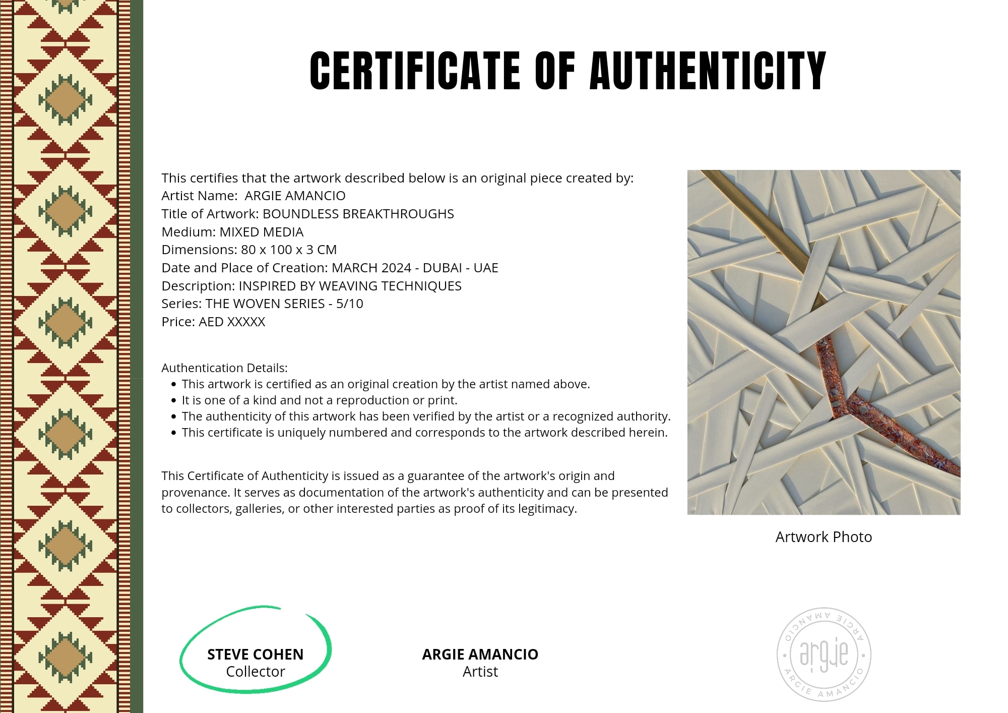 You're one of the first collectors of the same type of art. Perfect for interiors. Acrylic on canvas woven on canvas.