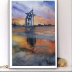Title : Burj Al Arab, Dubai By Artist : Divya Suratkal Medium : Watercolor Size: 30 x 22 cms Price : AED 1500 Mounted but not framed
