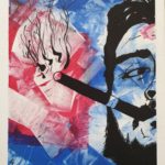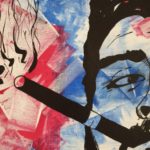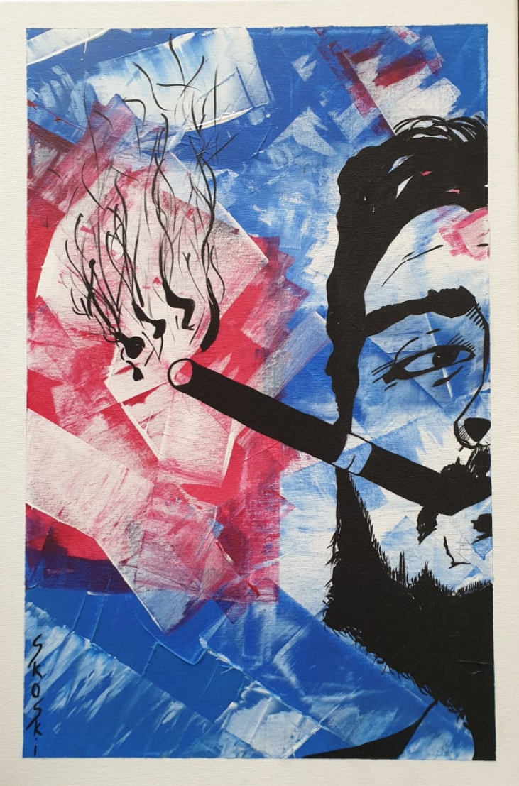 Abstract art painting of Che Guevara using the colours of a Cuban flag.