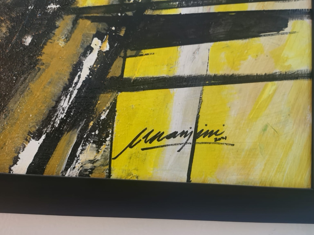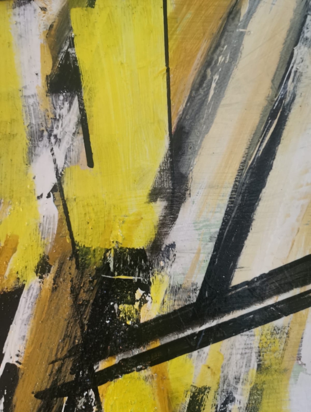 A bright painting using only two colors, yellow and black. My experiment with bold strokes.