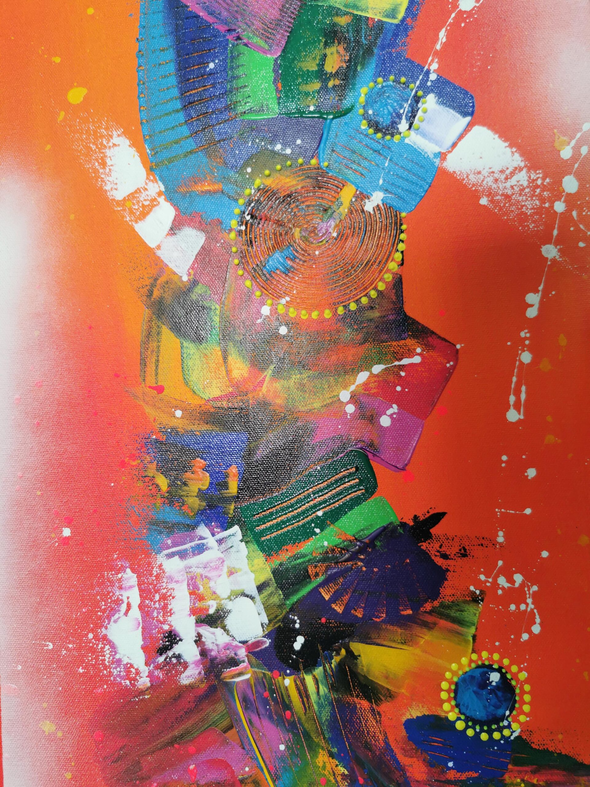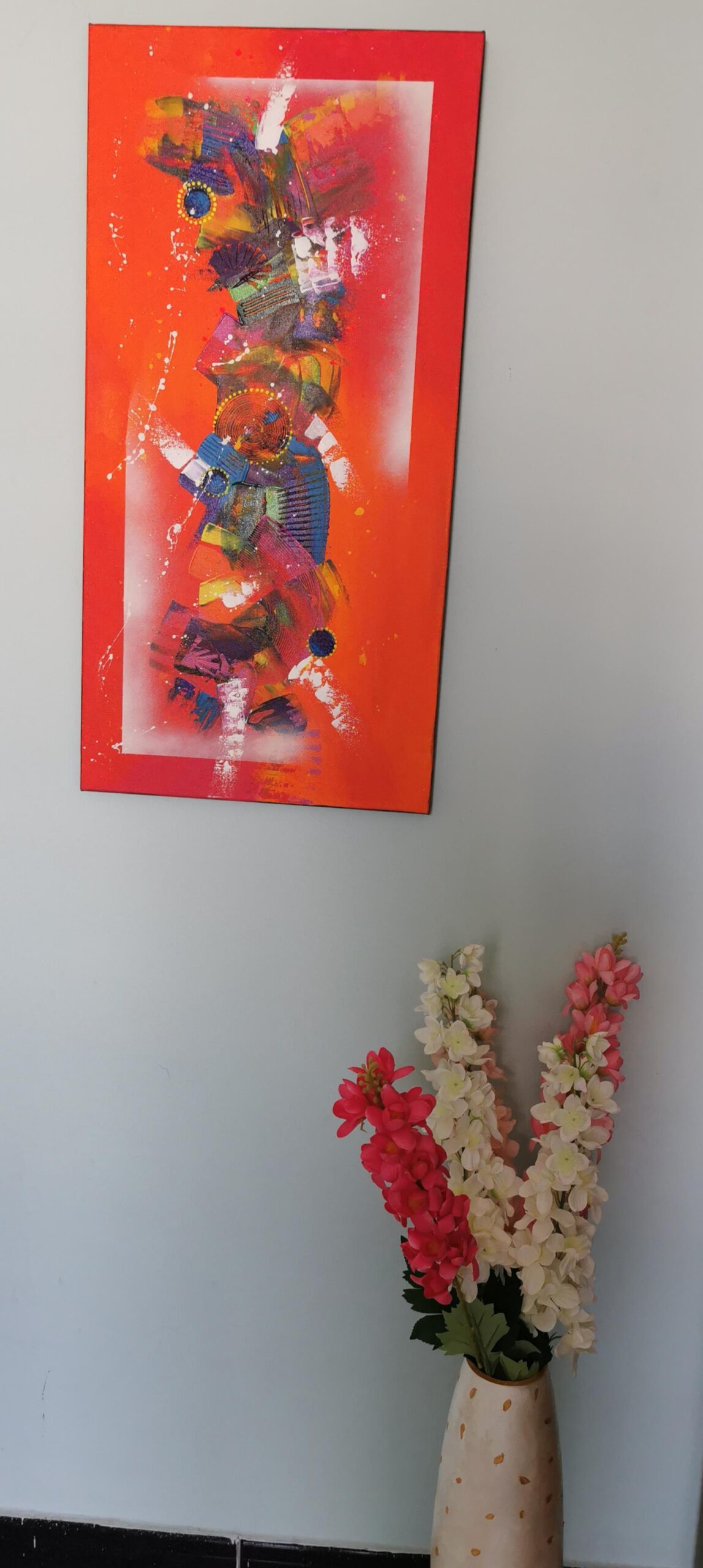 this painting is full of vibrant colours which will enlighten your space with so much joy and piece.