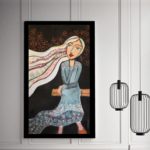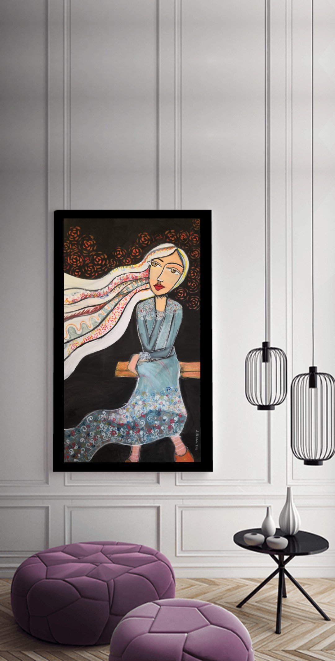 The painting features a daydreaming woman, thinking about her dreams and ambitions.