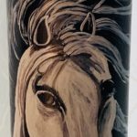 Decorative recycled glass bottle painted with acrylic.