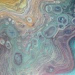 A fluid acrylic pour painting on a gallery wrapped canvas , painted with metallic and shimmery colors. It has a beautiful sheen and finished with a high gloss varnish.