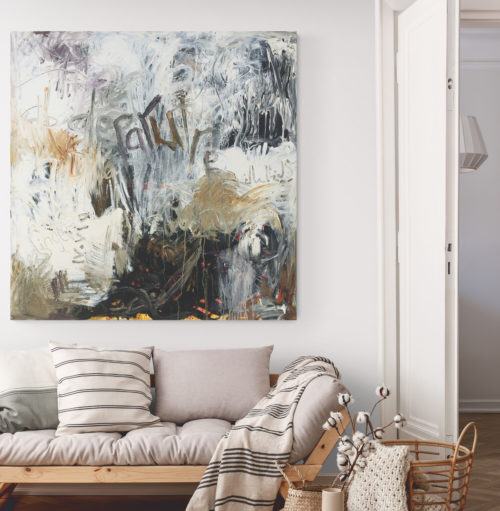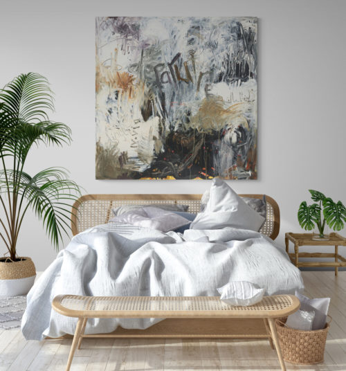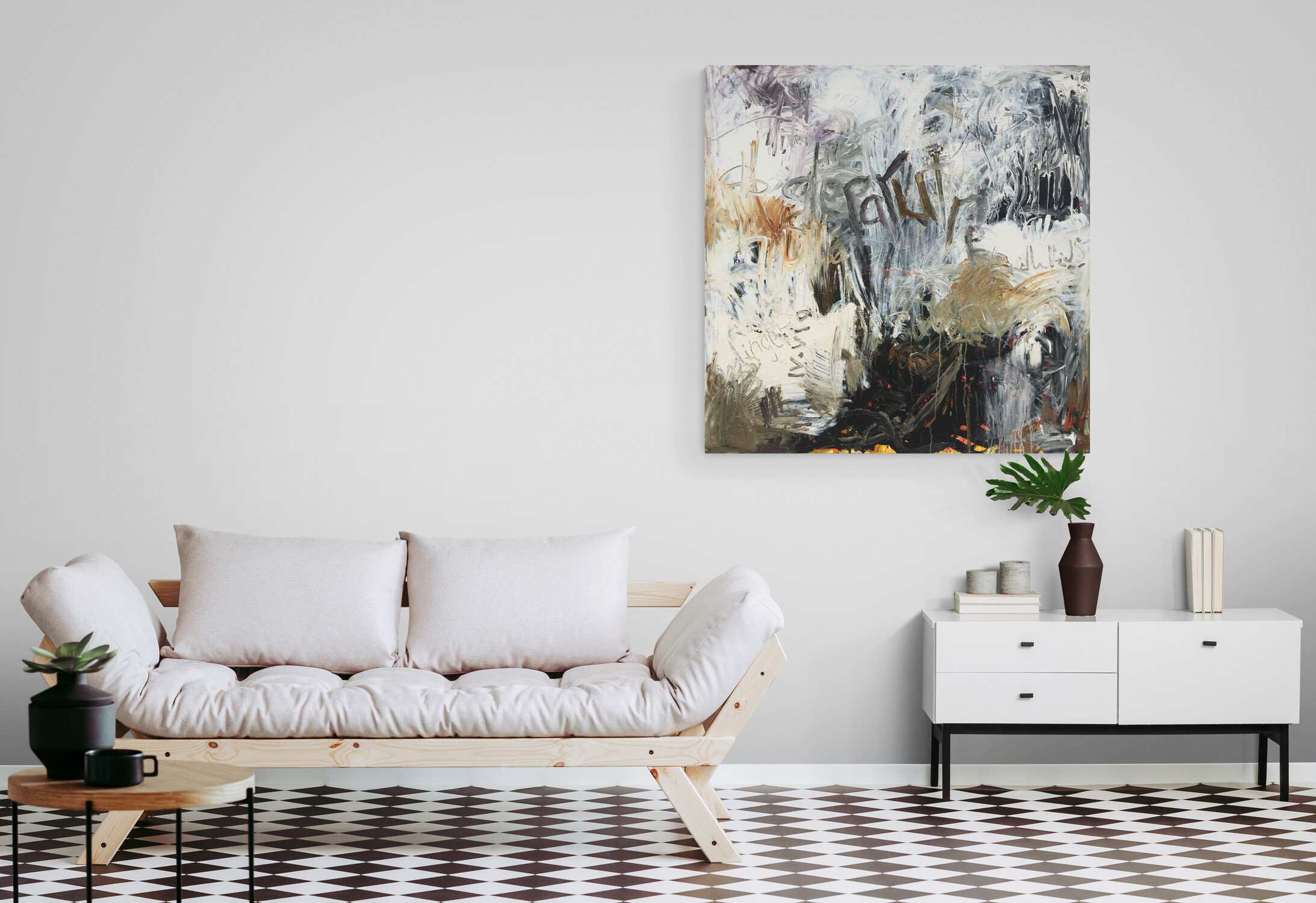 This is an original expressionistic abstract painting of my "writing on the wall" series. Which was inspired by clay walls of abandoned village houses in some old regions in the Middle East. It was made of acrylic on canvas. Created on July 15, 2017.