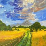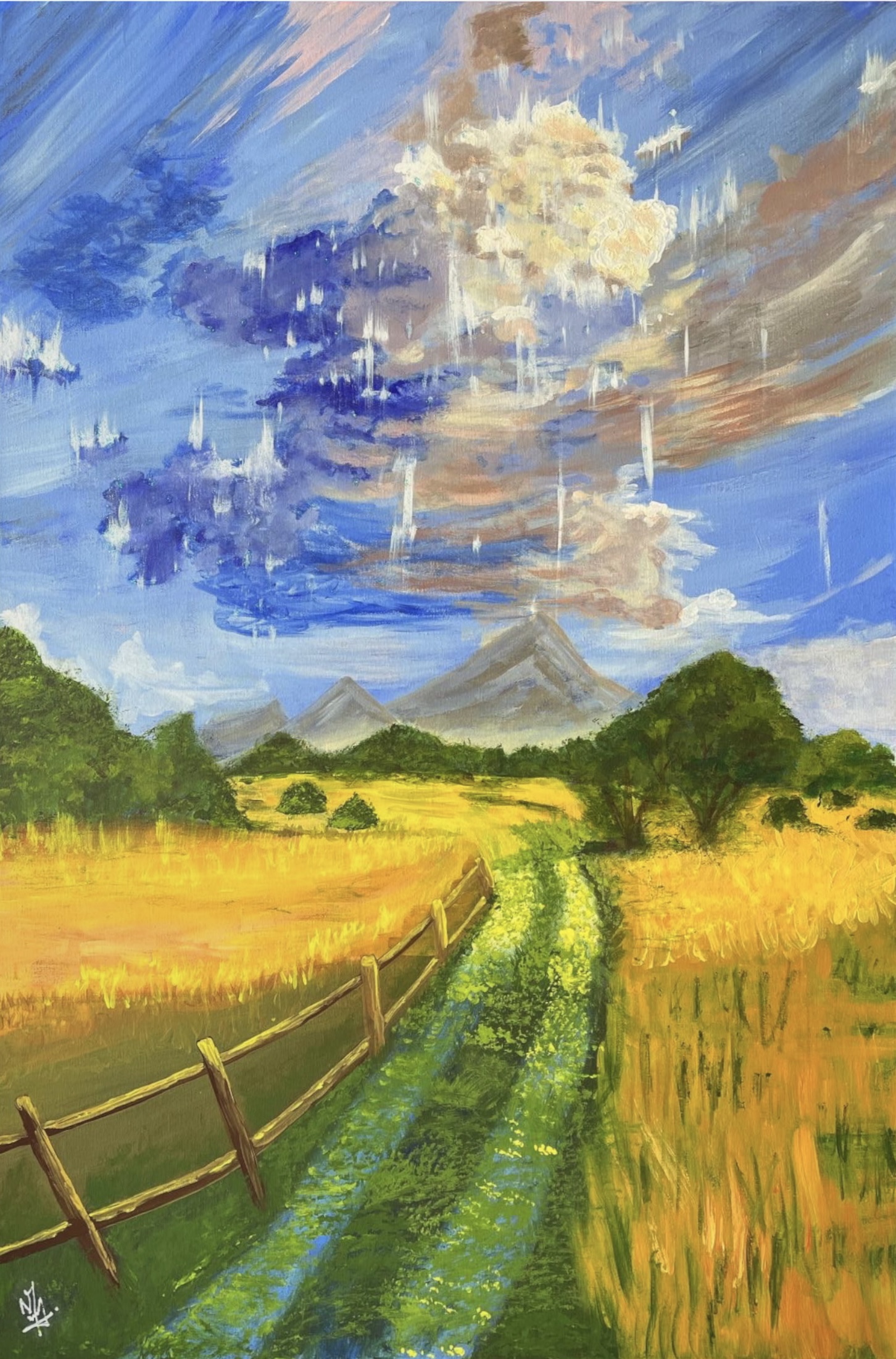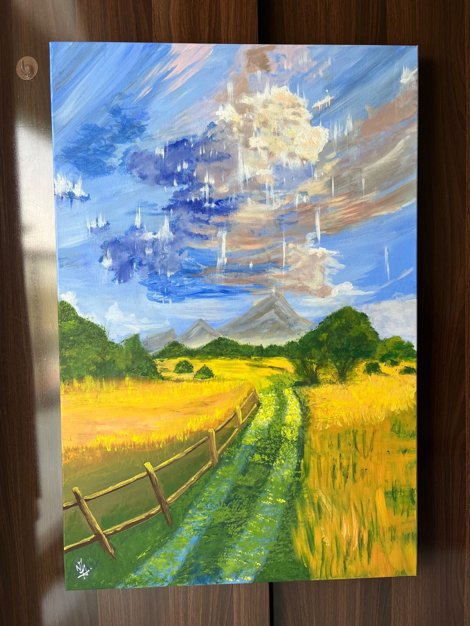 This painting is made by using acrylic paints and glitters which can be seen more vividly in real life. This painting will take you to your own fairy land where you enjoy your time and you are all free.