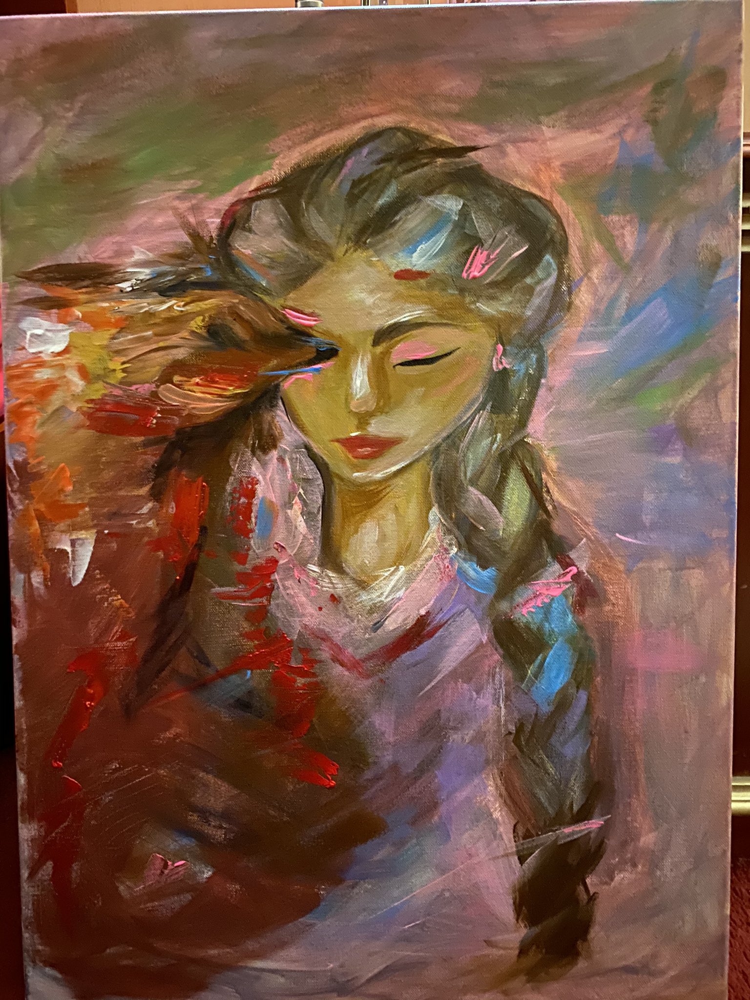 acrylic paint, 50x70, 540$ Drifting into the lives that sculpt her she became the embodiment of sweet chaos and perfect tribulation