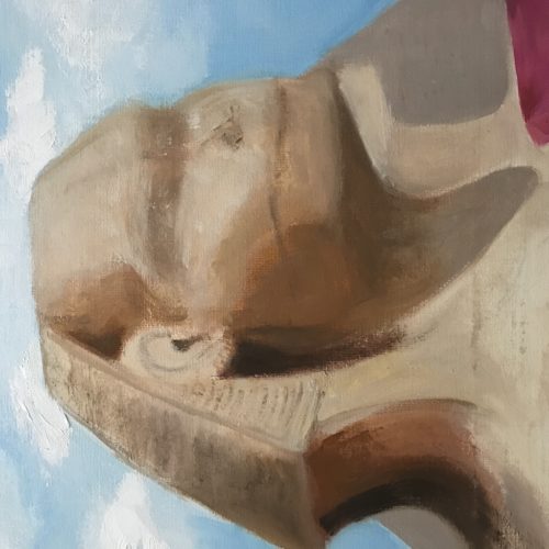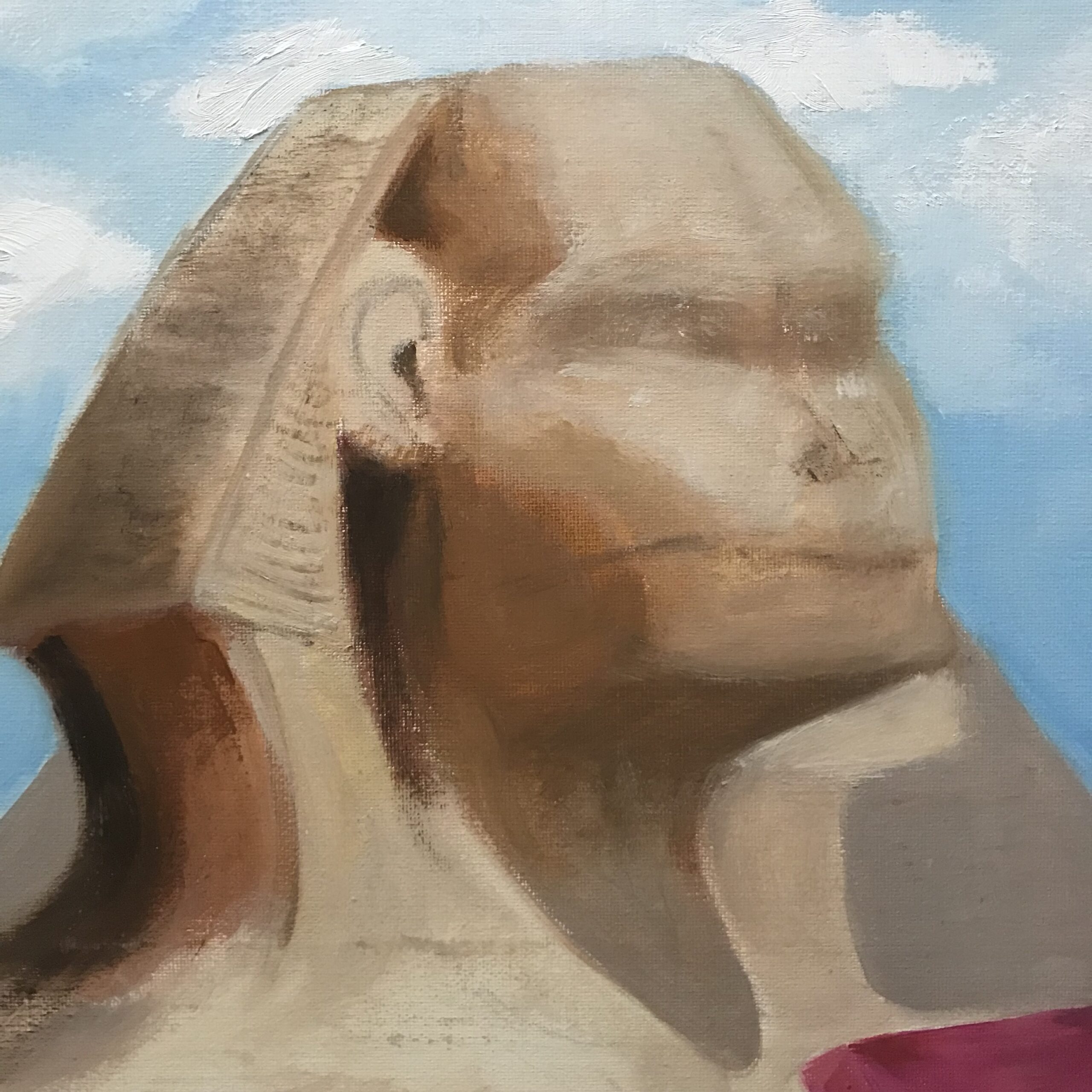 This oil painting represents a French tourist that is looking proudly at the Sphinx showing love and respect to the Egyptian history. Painting done with knife palette technique
