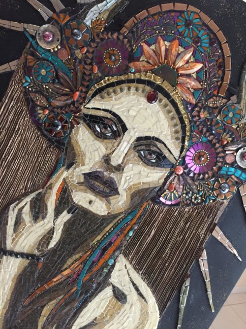 One of my most intense mosaic art - This is an exquisite piece made on wood with a complex backstory. Ekarma is a volcanic island in the ring of fire and I wanted to bring it to my audience in the form of a woman. An island -That’s how I like to describe myself. Solitary but self-reliant, contained yet content, possessive yet permissive, weathered but still evolving. I revere my undisturbed reclusion. A fortification from the unknown, the uncertain and extrinsic. My impermeable barrier, my strength. Until some lost souls get washed onto my shores. Some helpless, some hurt, some distraught and some just lonely. Betrayal, treason from within-impermeable becomes vulnerable leaving me exposed to the foreign again. Unguarded and unprotected, I succumb, embrace, relentlessly nurture and hope to heal. Gradually and unknowingly demolishing myself to re-build this being. This arduous journey leaves me exhausted, depleted and void. Savior to the “slayed”.... unrecognizable regression each time. I now look for strength and dependency in my creation. But my island is never a destination, the healed will leave. Its an unspoken ritual. Can you ever see an island weep? I start over, reconstructing from the rubble left behind, unconsciously preparing for the next castaway. Hardened by the forces and adorned by the scars of self-immolation. Martyr or masochist ? I am Ekarma.
