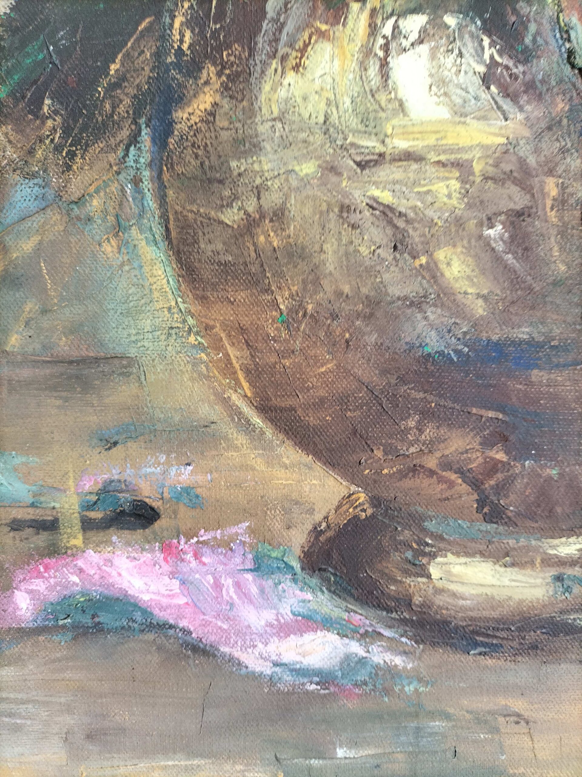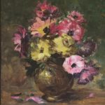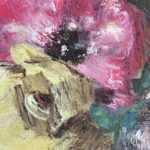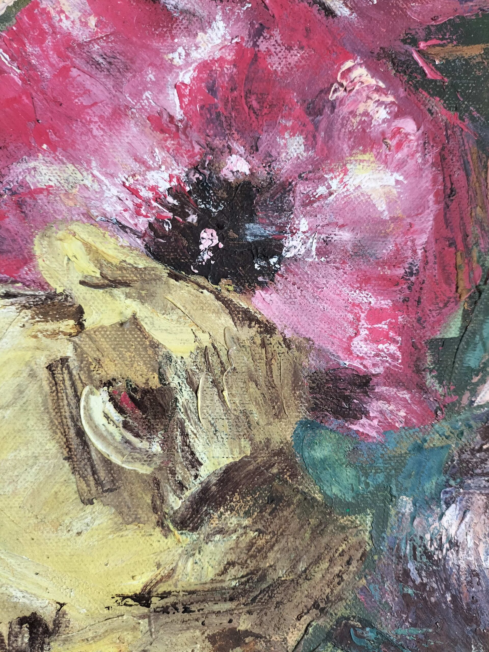 It's a framed oil painting of flowers still life created with thick paint applied with palette knife on a stretched canvas. It can be hanged vertically to enjoy it's beauty in any elegant interior space.