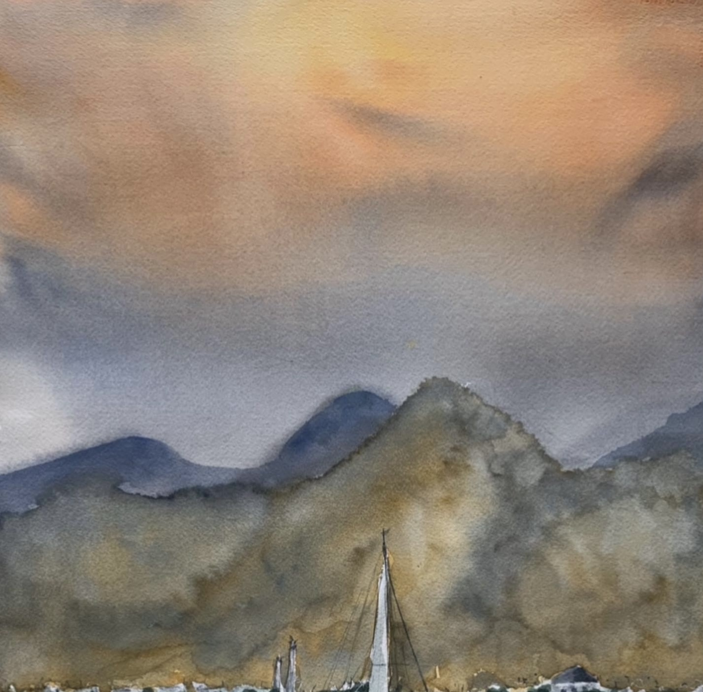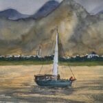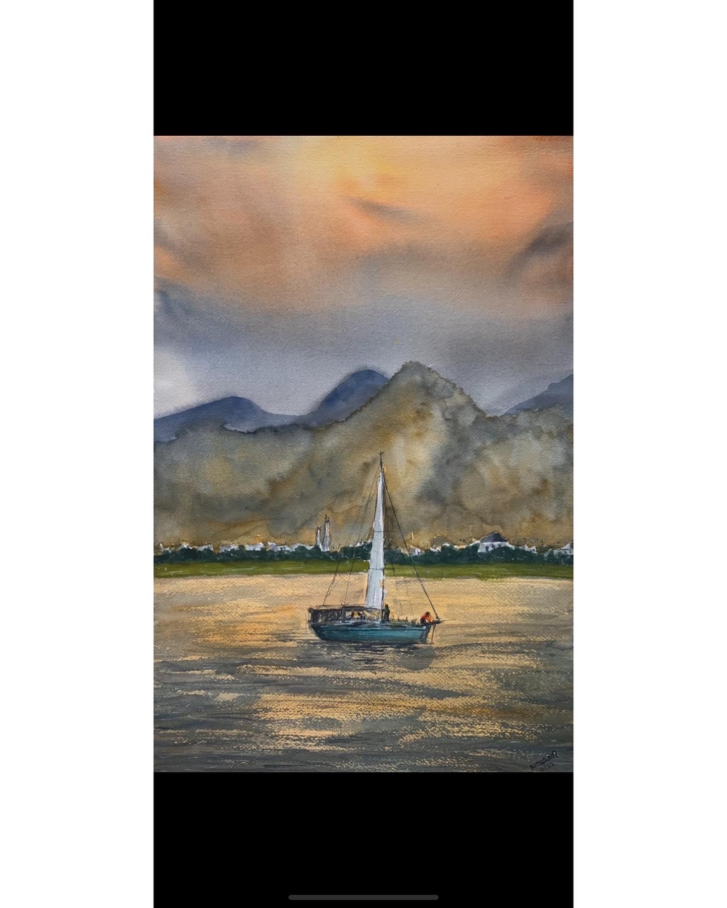 The glittering sea with the mountains in the backdrop make a perfect setting for an artist to capture it in a painting.