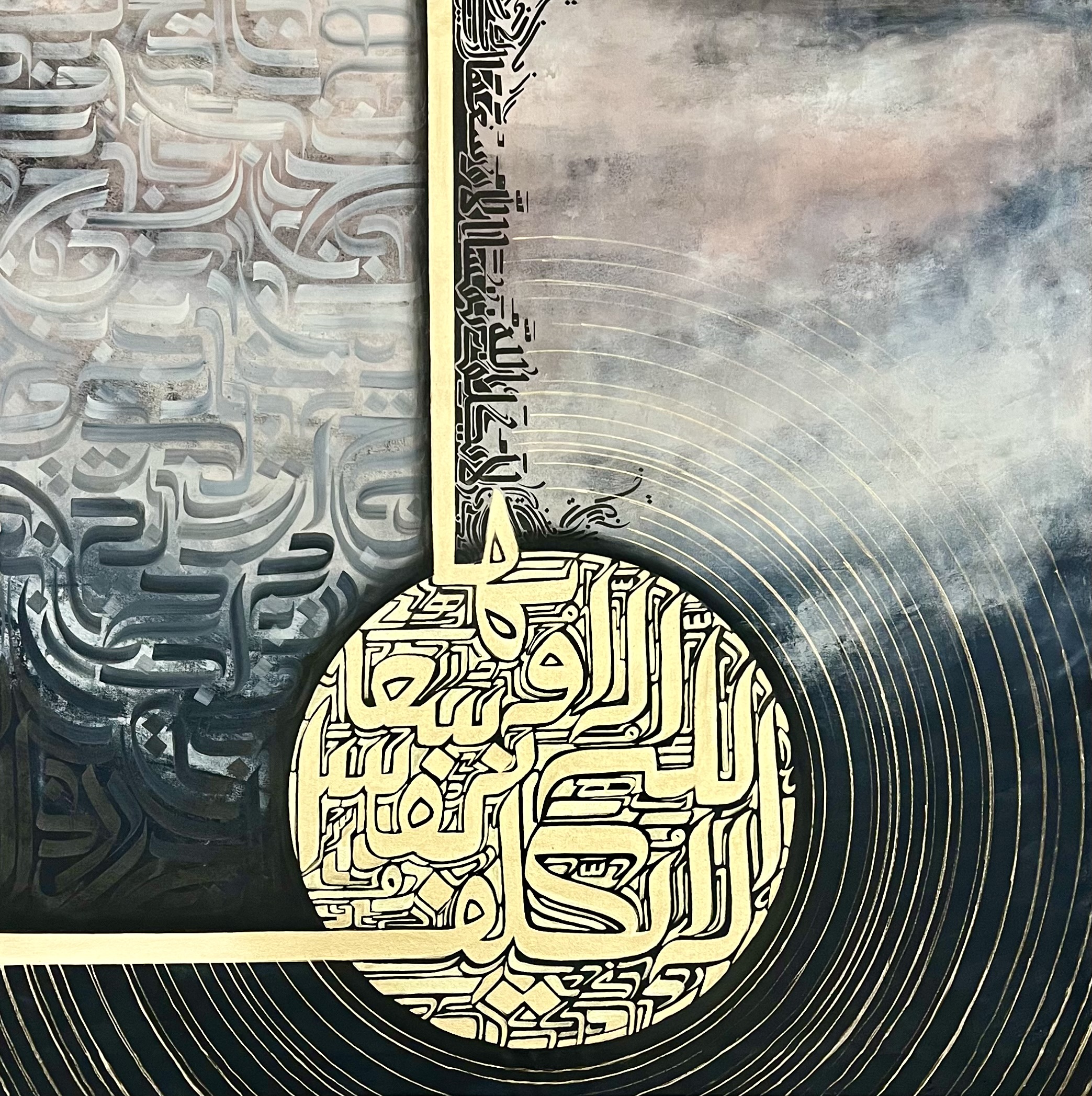 “Endurance” - 90 x 90 cm This is conceptualized around a verse of Quran that calms me during hard situations and reminds me that Im strong enough and thats the reason Im being tested and I can definitely make through this… لَا يُكَلِّفُ ٱللَّهُ نَفْسًا إِلَّا وُسْعَهَا “God does not burden any human being with more than he is well able to bear;” Quran : 2:286