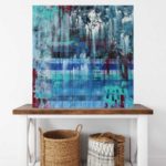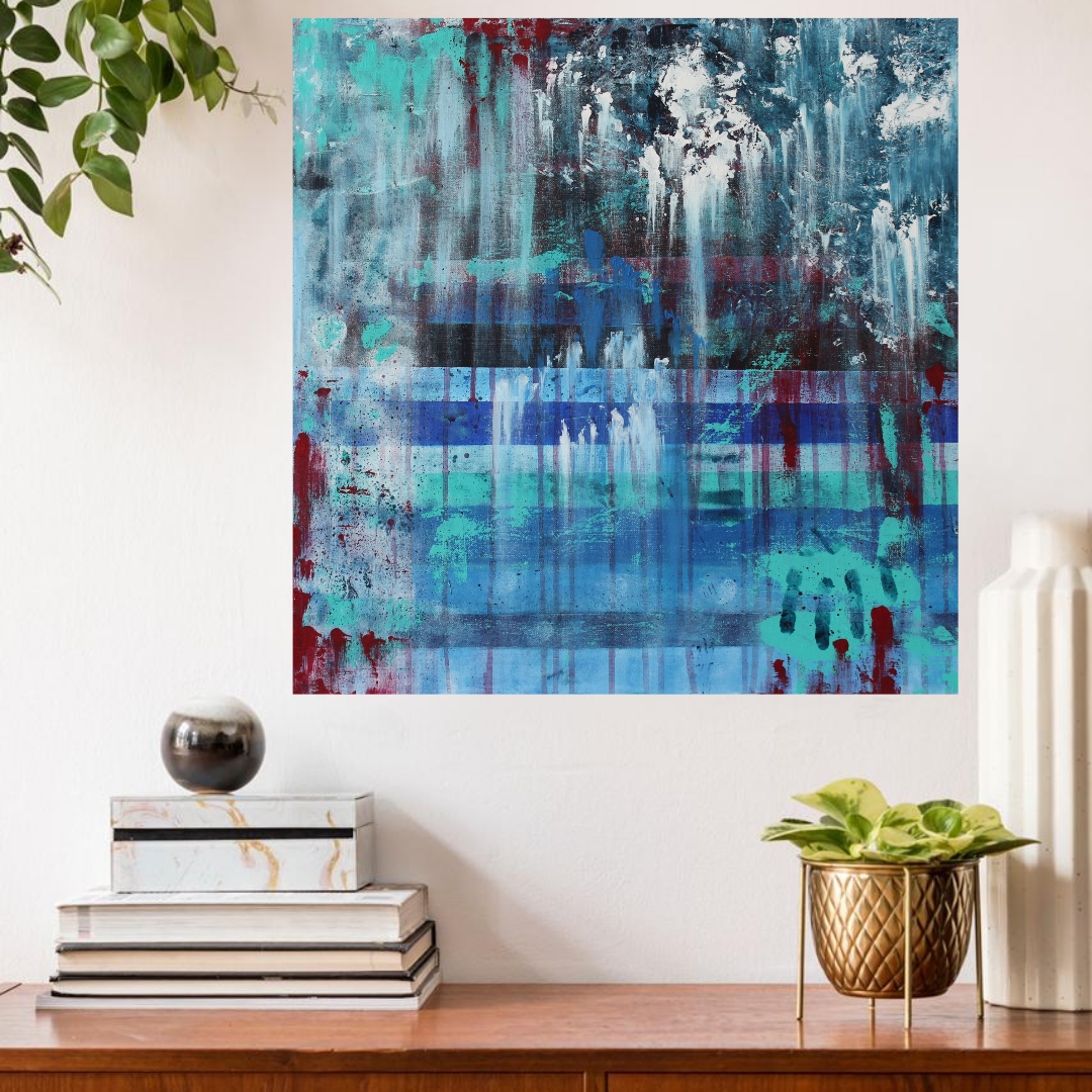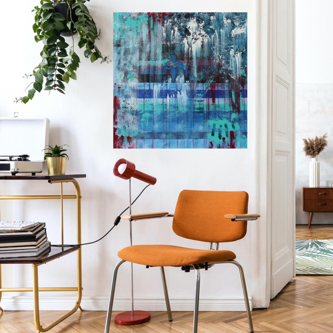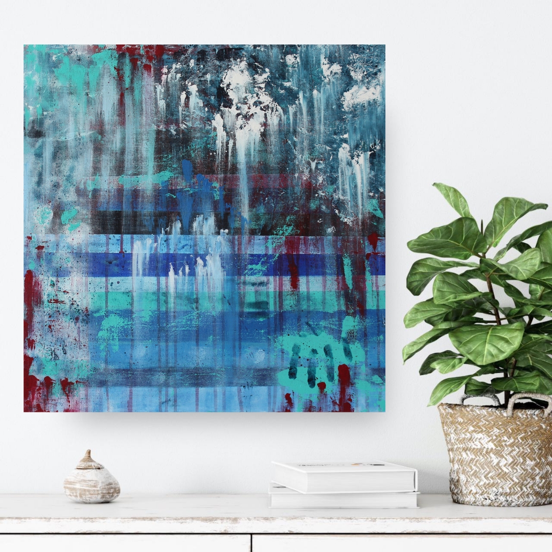 Original and unique abstract acrylic painting made in 2020 on a deep edge stretched canvas 60x60 cm. This piece is painted and varnished on the sides of the canvas as well and it does not require a frame. It is fitted with a wall hook and is ready for hanging on your wall. Original artwork signed and dated on the back by the artist.