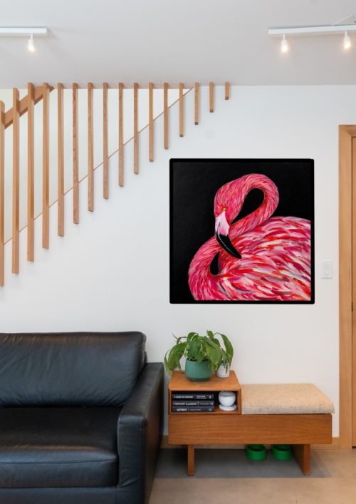 A Flamingo pose with great vibrancy aim to give high contrast to the space you are planning to hang it on.