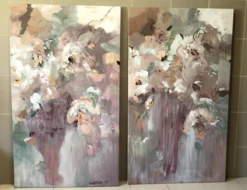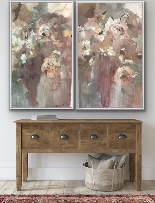 A pair of two floral abstracts giving a very romantic and soft vibe. Can be purchased as a set or individually. Priced quoted of each piece.