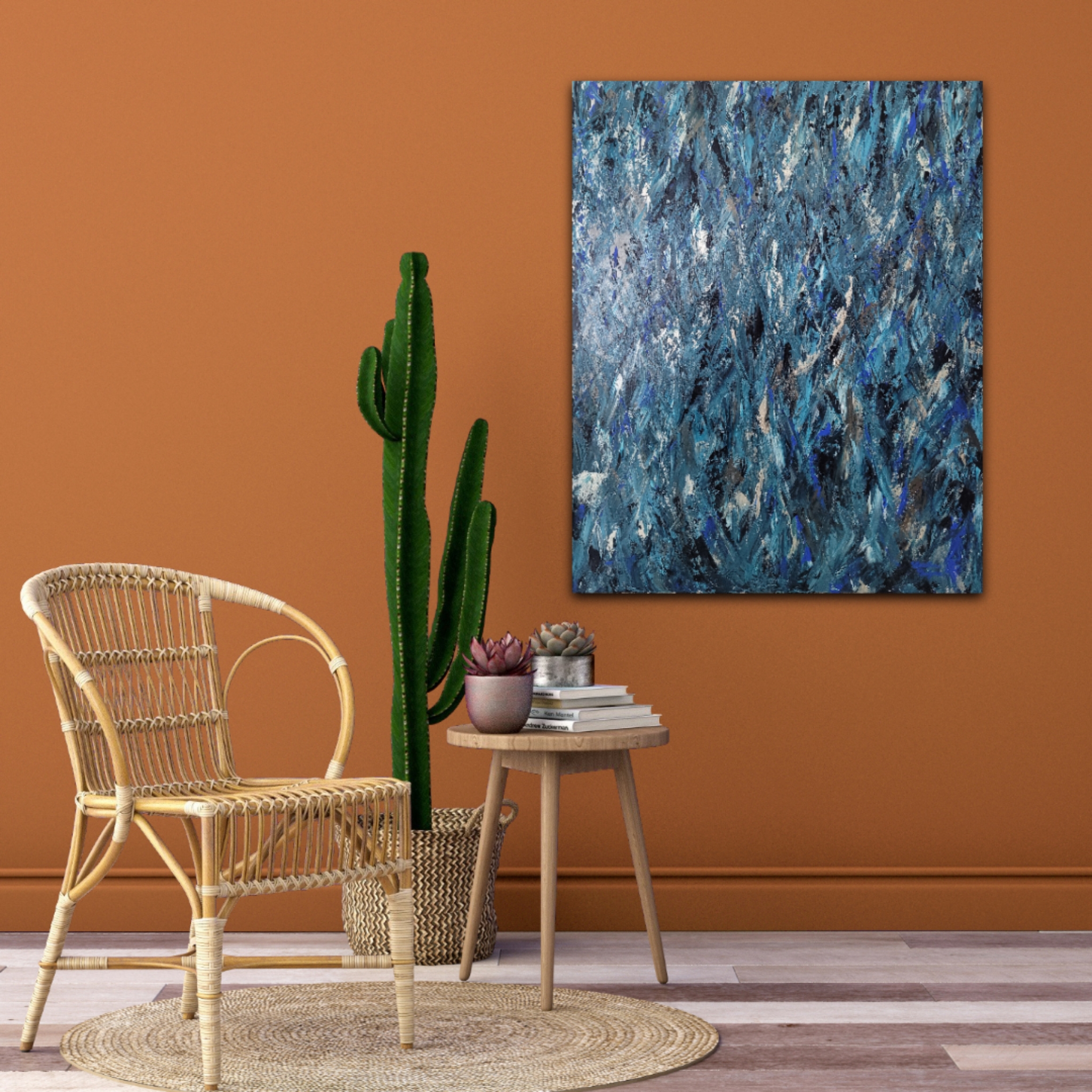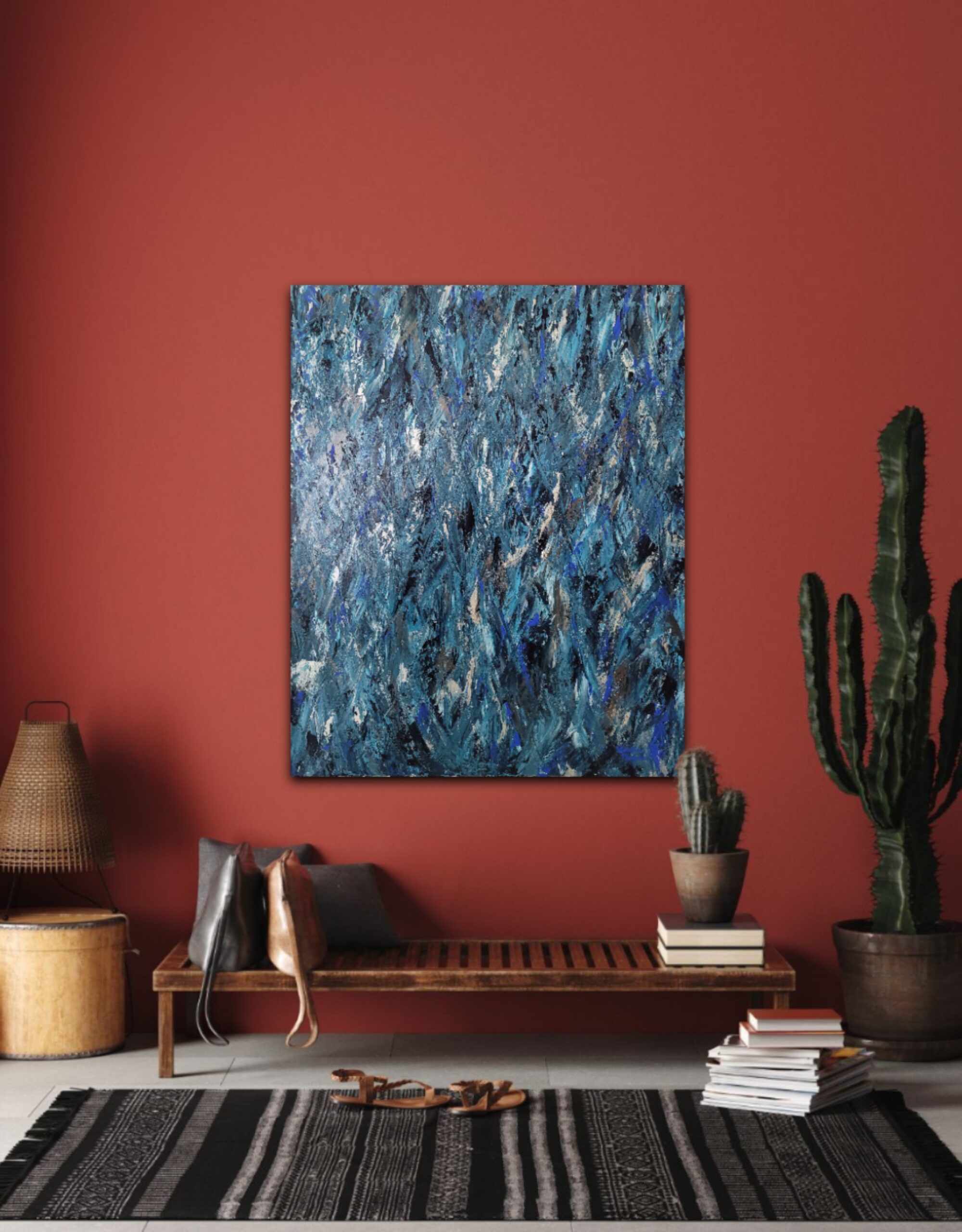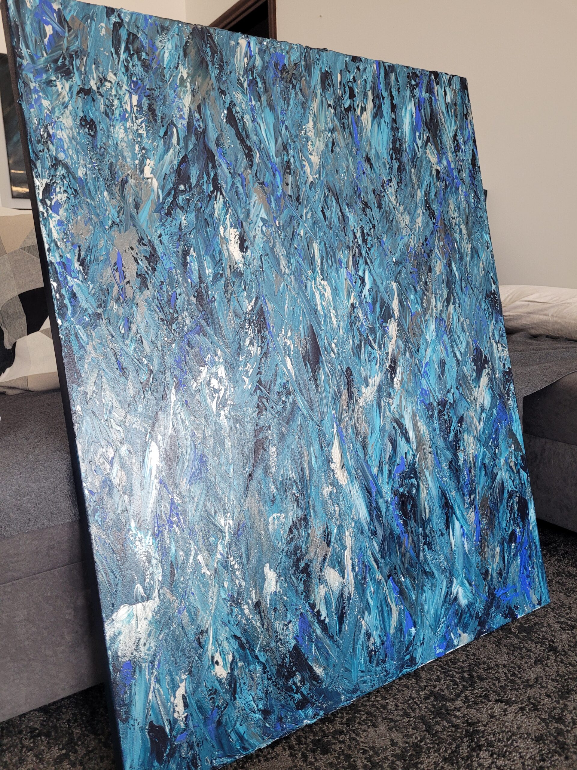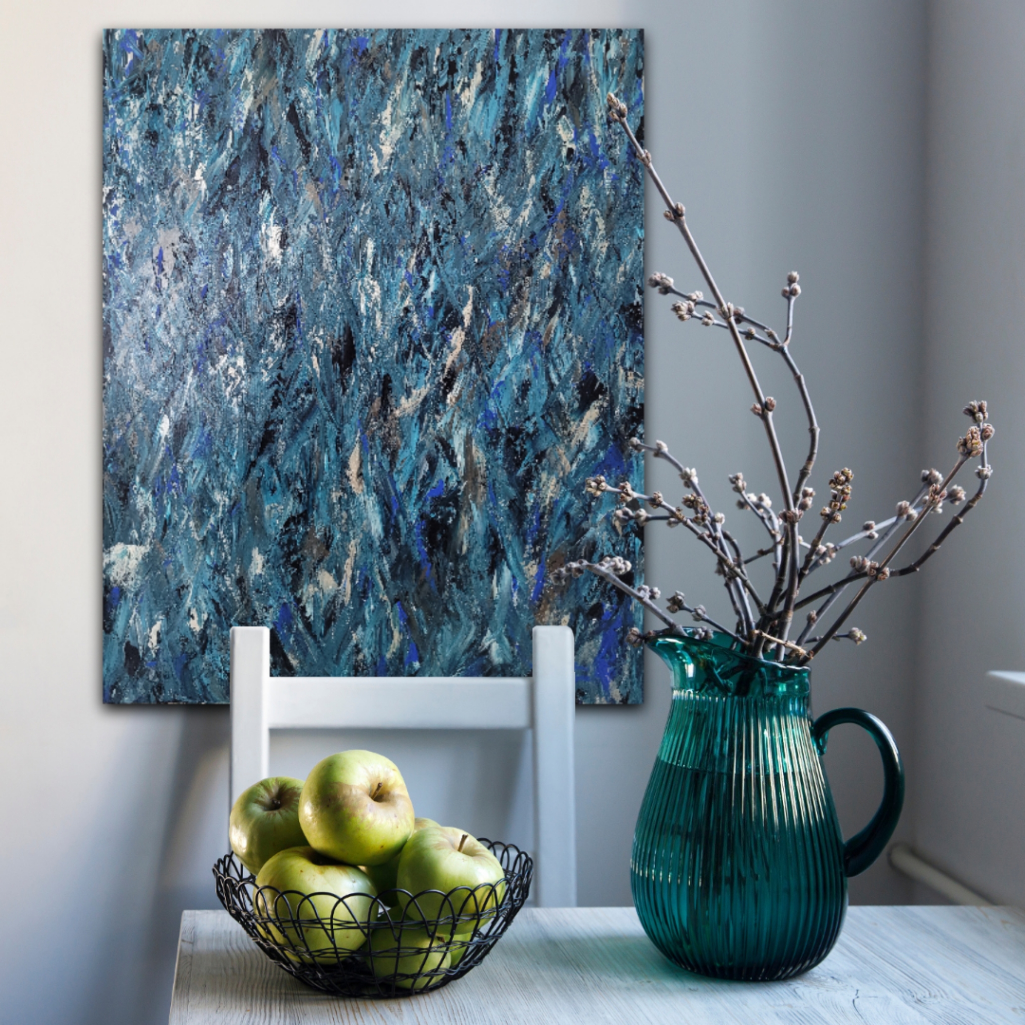 Original, acrylic, abstract painting made on a deep edge, and a stretched canvas 80x100 cm. This piece is painted on the sides as well and it does not require a frame. It is fitted with a wall hook and is ready for hanging on your wall. Certificate of authenticity provided. Signed and dated by the artist on the back.
