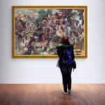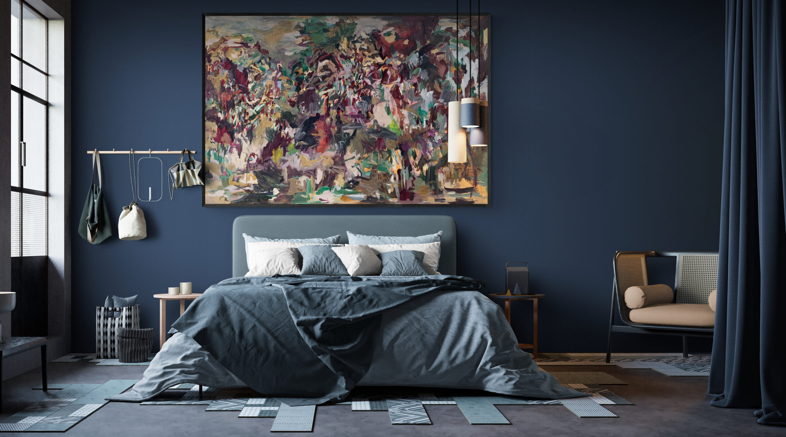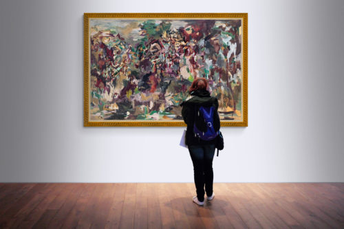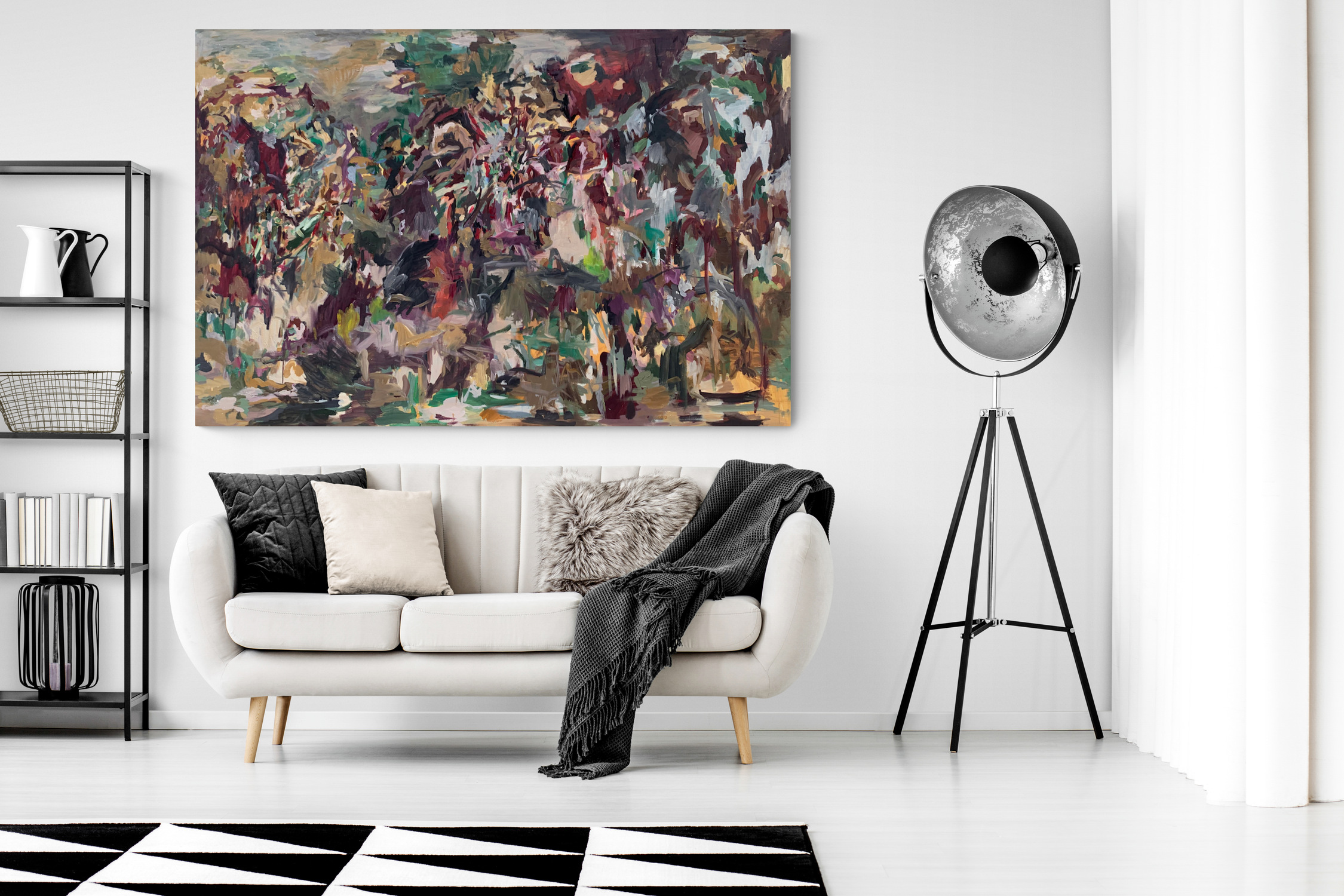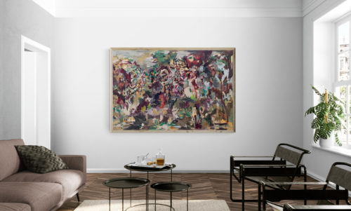 This painting is part of the Fragmented Memory series that was inspired by places I never been to, but read about in novels. I called this painting “Forgetting Granada”. I made it in July 2020. The medium is oil on canvas of size 47x71 inches (120x180 cm). I have signed it on the front. The stretched canvas is staple free sides, wired on the back and with no need for framing. It's ready to hang. Even the sides are painted with the theme colour of the painting