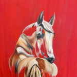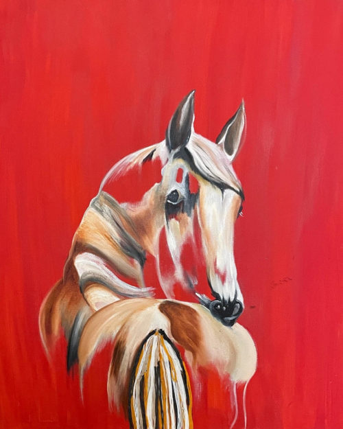 A horse teaches us to be free spirited. This painting has bright and bold colors which makes this painting perfect for any wall. The horse's tail and mane are blowing in the wind for a regal look.