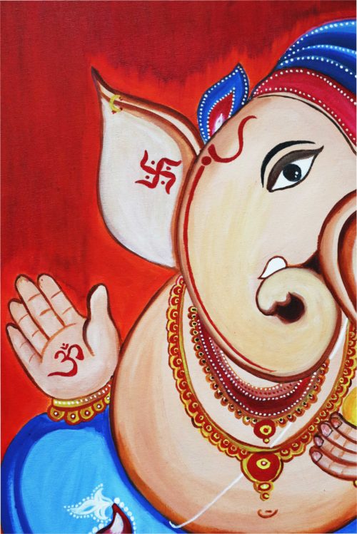 Lord Ganesh - Painting Indian scriptures are filled with awe-inspiring stories of Ganesha. He is considered to be the destroyer of obstacles and bestowed of prosperity, wisdom and abundance, and is worshipped before starting up any important tasks. You can place Ganesha paintings at an elevation in a well-lit area of your house or office to show that you are respectful of the religious and spiritual icon.