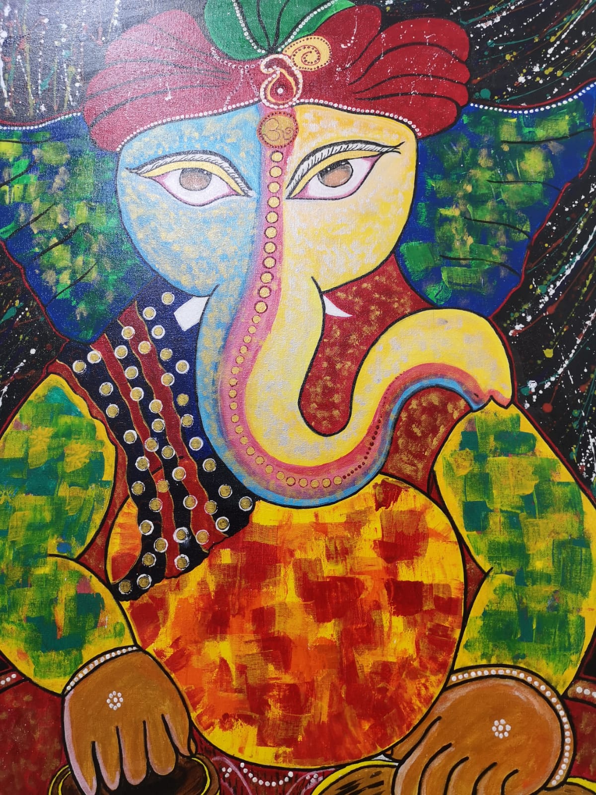 The large elephant head of Lord Ganesha symbolizes wisdom, understanding and a discriminating intellect that one must possess to attain perfection in life.