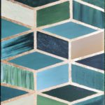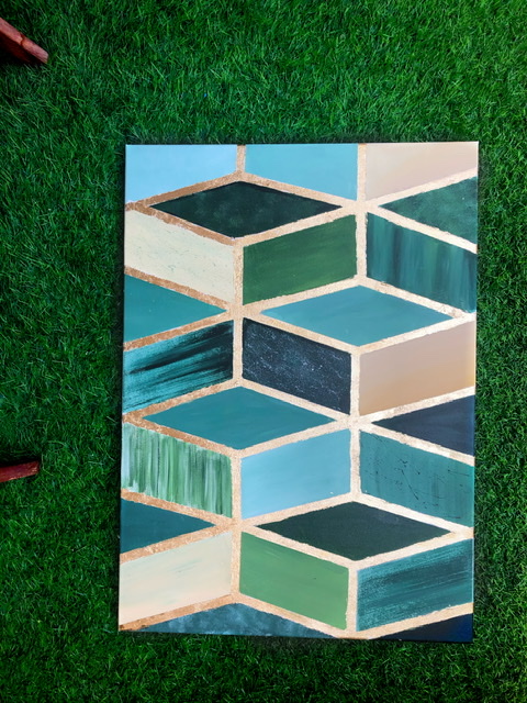 An acrylic painting with different tint and value of green color , mixid with gold foil .