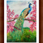 Peacock is a symbol of grace and poise!! This painting of the beautiful creature can add vibrant colours to any room or space ... the painting will come framed