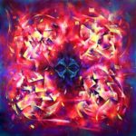 Beautiful, vivid and passionate image of four hummingbirds (guardians) of love presented as wild flowers. Painting is made with Perl effect acrylic paint which makes it shine with different colors and reflect light.