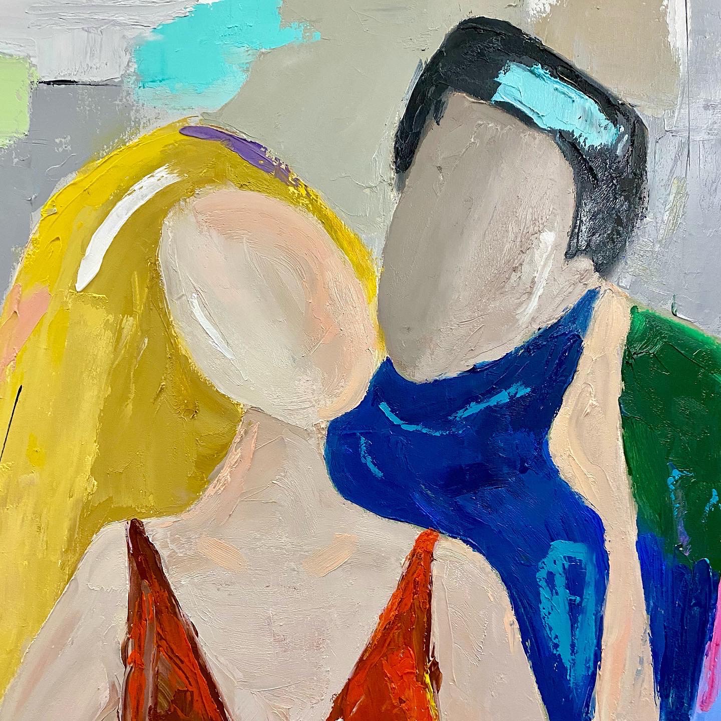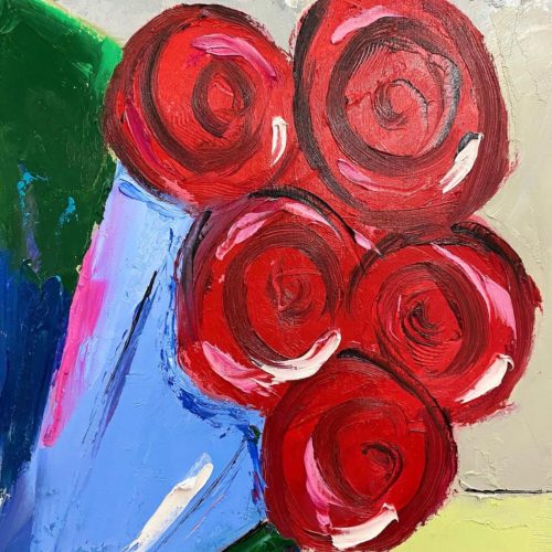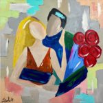 Happy Anniversary is an oil painting is done with knife palette technique describes a couple celebrating their anniversary
