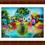 The painting is made with oil pastels. The vibrancy of oil pastels is easily reflected in the beauty of spring around the house. It's a beautiful piece of art to art colour, positivity, grace and beauty to any corner of your house.