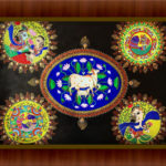 The painting depicts the intricacy of Indian folk arts namely, Madhubani and Pichwai. They are from different parts of India and generally depict the traditions and culture of India in a colourful manner. The intricate work of this painting is ideal to adorn any place in the house. It's beauty is enhanced by the dot mandala work done around all the different themes.