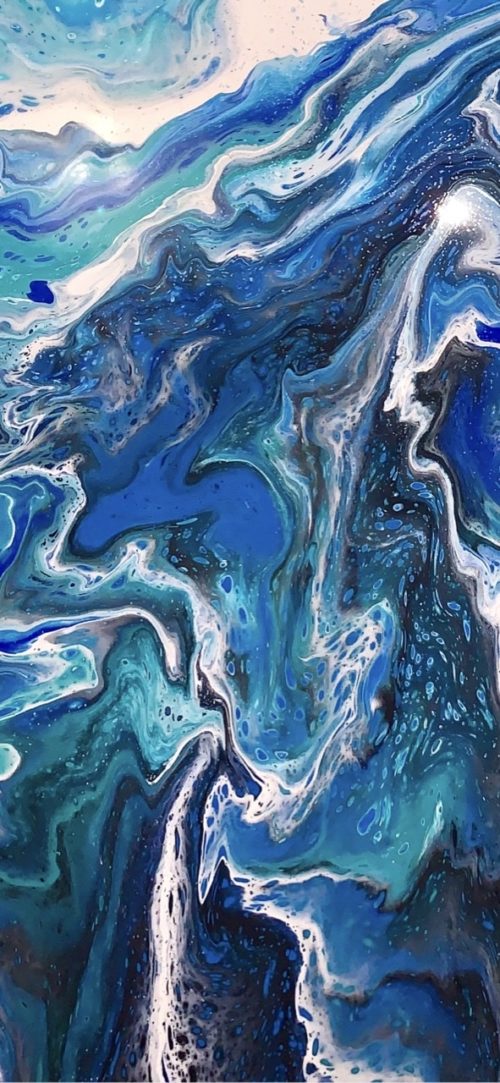 This is another original acrylic painting thanks to its size and beautiful color blend creates a calm atmosphere of a seaside harbor minutes after sunset in your house. Looks particularly great on large empty spaces that need little color accent.