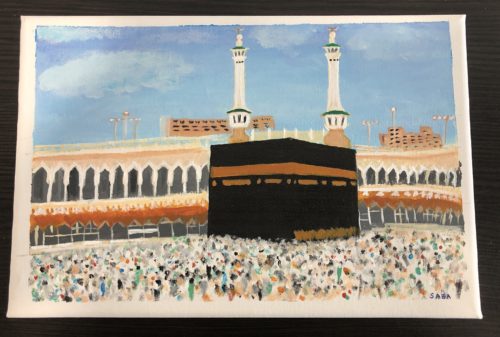 A beautiful painting of Kaaba in the bright day sky. The pilgrimage for all the Muslims. A structure not just known for its beauty but the treasure of history and religious sentiment associated with it!