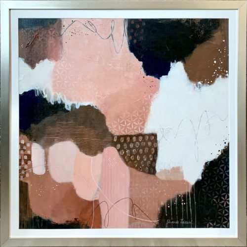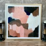 This artwork brings together beautiful blush pink, peach with browns & blacks in a unique composition suitable for any modern interior space .
