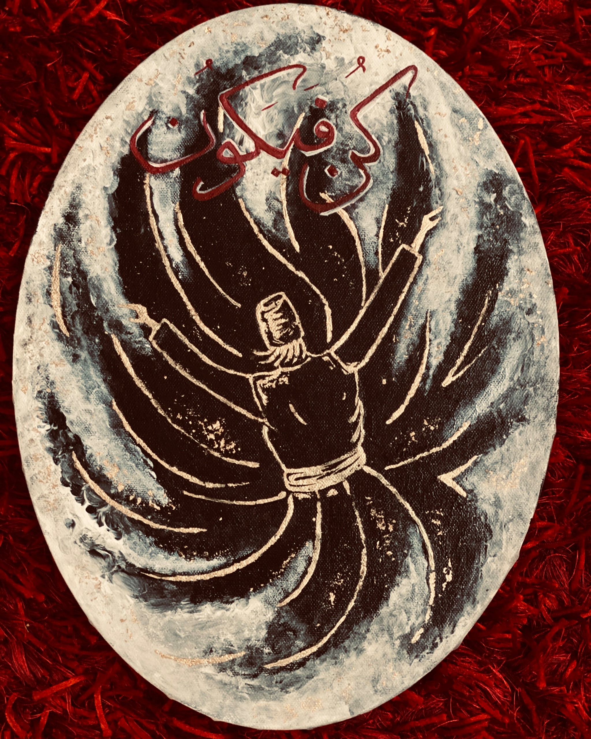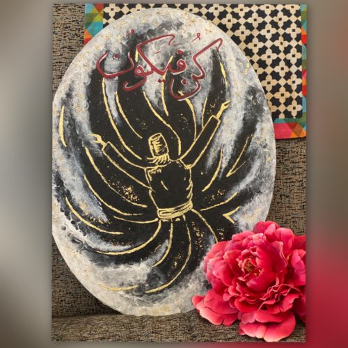 This painting is inspired from Turkish Calligraphy with the touch of Islamic calligraphy. The word ‘Kun’ means to ‘be’, manifest or exist. It is used in reference to Allah’s Glorious creation powers. 'When He decrees a thing, He says to it only: "Be!" And it is.'