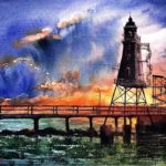 Title: Light House Medium on Material: Watercolour on Paper Dimensions: 28cms (H) X 38cms (W)